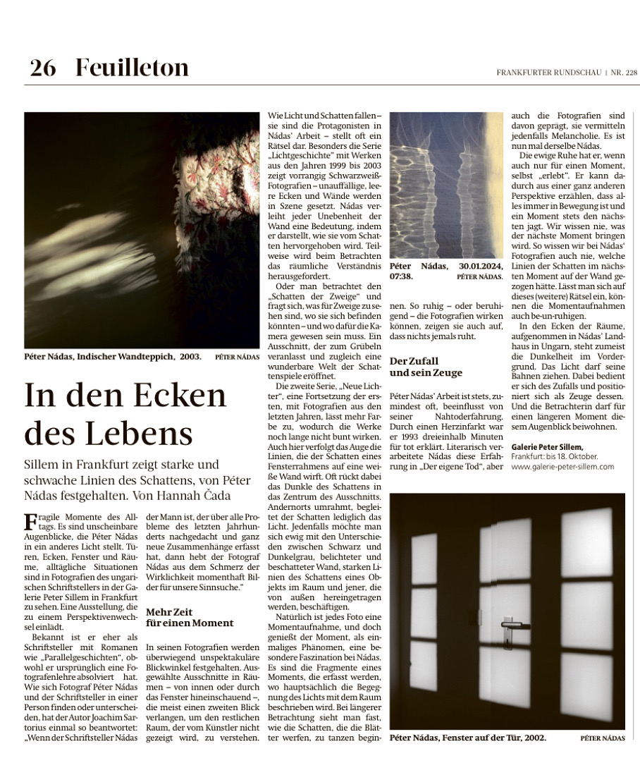 Frankfurter Rundschau reviews Péter Nádas's exhibition "Lichtgeschichte / Neue Lichter"