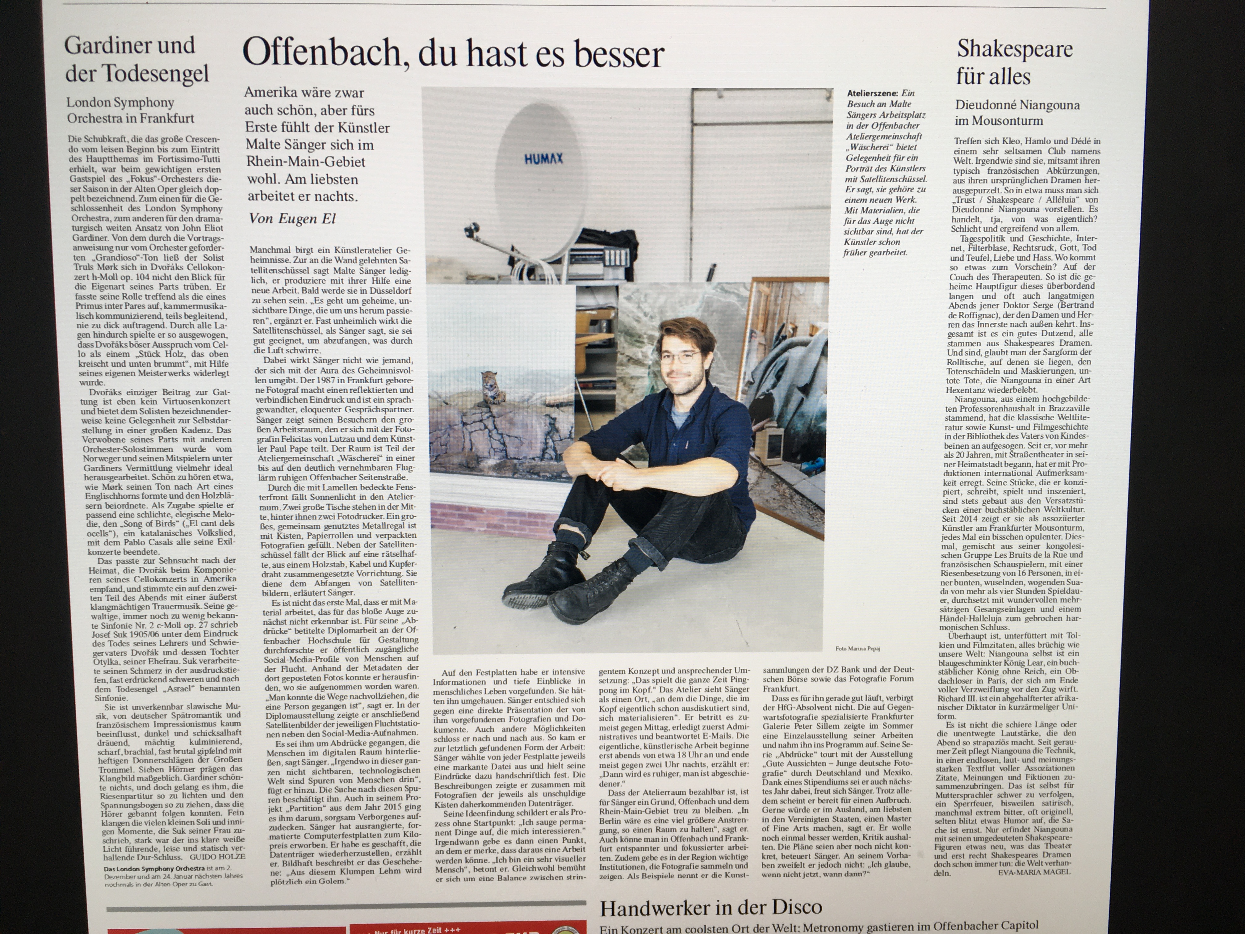 Ein Künstlerporträt von Malte Sänger in der F.A.Z.