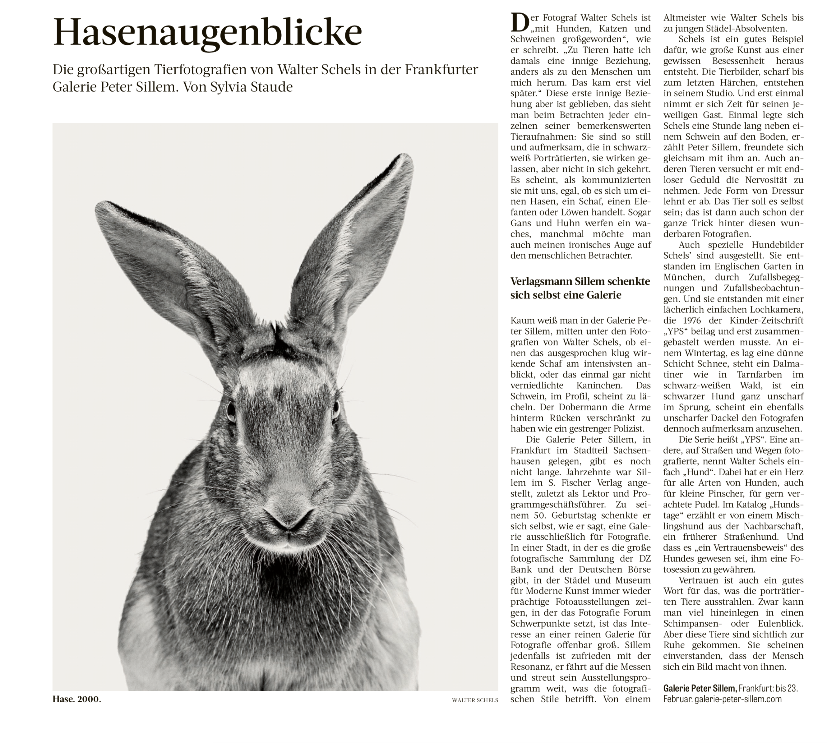 Die Frankfurter Rundschau über Walter Schels' Ausstellung Tiere